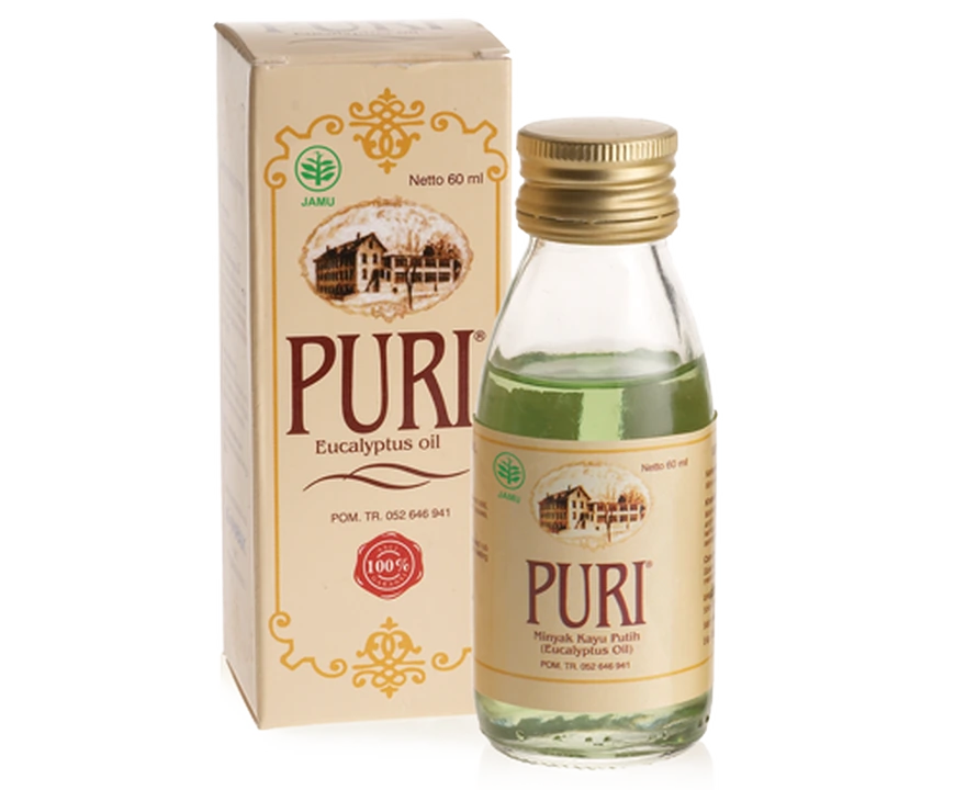 Puri Minyak Kayu Putih terbuat dari bahan baku Eucalyptus pilihan yang berkualitas tinggi dan diproses secara khusus melalui penyulingan. Kandungan Puri Minyak Kayu Putih adalah 100% Eucalyptus Oil tanpa campuran pelarut lain, menjadikan produk ini unik dan berbeda dibanding produk sejenis di pasaran. Puri Minyak Kayu Putih berkhasiat :